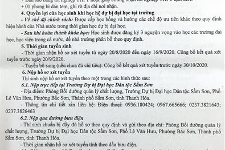 Trường Dự bị Đại học Dân tộc Sầm Sơn thông báo tuyển sinh dự bị đại học năm học 2020-2021