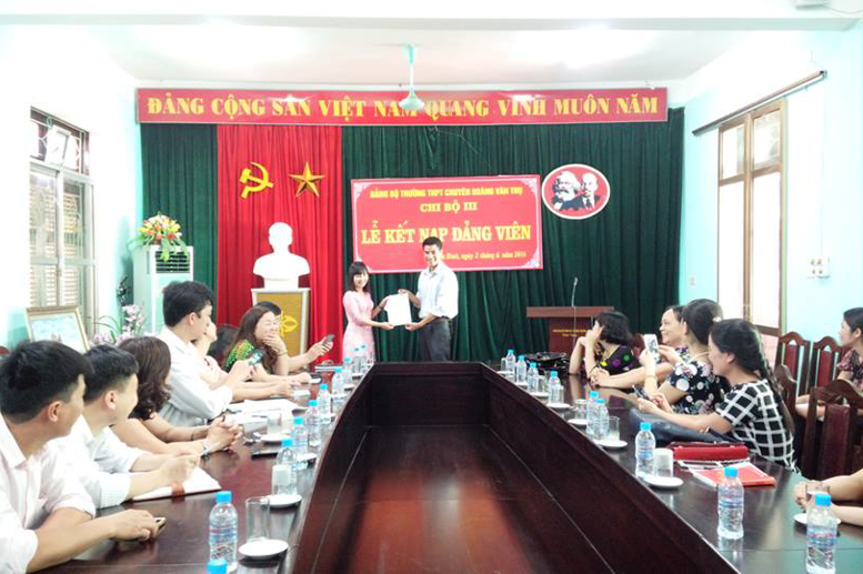 Ngày 02/06/2016, Đảng bộ trường THPT chuyên Hoàng Văn Thụ đã tiến hành lễ kết nạp đảng viên mới cho quần chúng ưu tú đang công tác tại trường. Lễ kết nạp diễn ra trong không khí trang nghiêm và theo đúng trình tự, thủ tục được quy định.