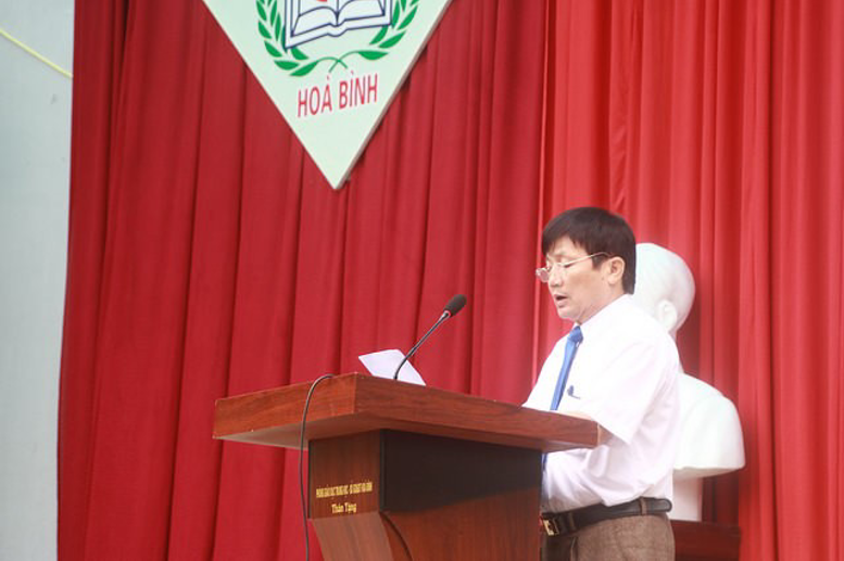 Thầy Nguyễn Phú Thành - Chủ tịch Công đoàn Nhà trường kêu gọi Công đoàn viên tích cực hưởng ứng lễ phát động quyên góp ủng hộ