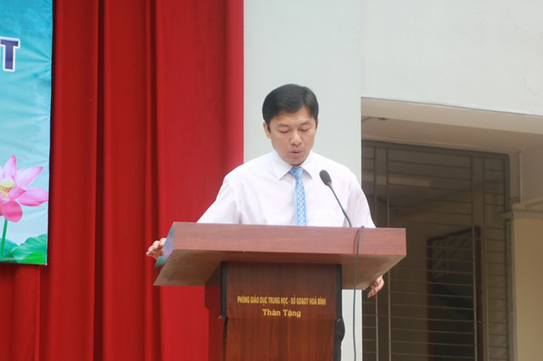 Thầy Quách Thắng Cảnh - Hiệu phó Nhà trường phát động lễ quyên góp ủng hộ