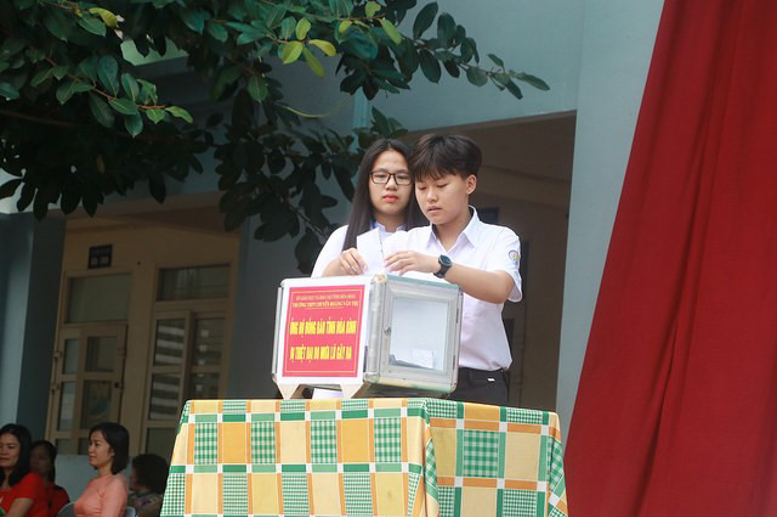 Học sinh đại diện các khối lớp của Nhà trường ủng hộ quyên góp đồng bào vùng lũ