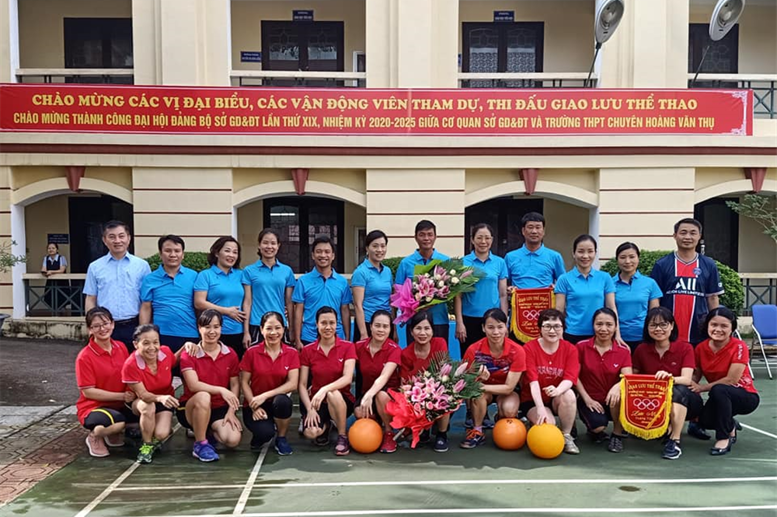 Dự và chỉ đạo buổi giao lưu thể thao có đồng chí Bùi Thị Kim Tuyến – Bí thư đảng uỷ, Giám đốc Sở GD&ĐT; các đồng chí lãnh đạo đảng uỷ sở, các phòng chức năng chuyên môn nghiệp vụ Sở. Về phía nhà trường có đ/c Bùi Văn Đường – Bí thư đảng bộ, hiệu trưởng, các đồng chí lãnh đạo Ban giám hiệu, Công đoàn, Đoàn Thanh niên trường THPT chuyên Hoàng Văn Thụ cùng 30 vận động viên là thầy cô giáo, nhân viên đã tới dự và tham gia 3 môn thi đấu: bóng chuyền mềm, bóng bàn và bóng đã nam.