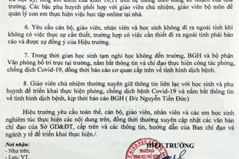 Tăng cường công tác phòng, chống dịch bệnh Covid-19 và thực hiện học Online cho học sinh trong nhà trường.