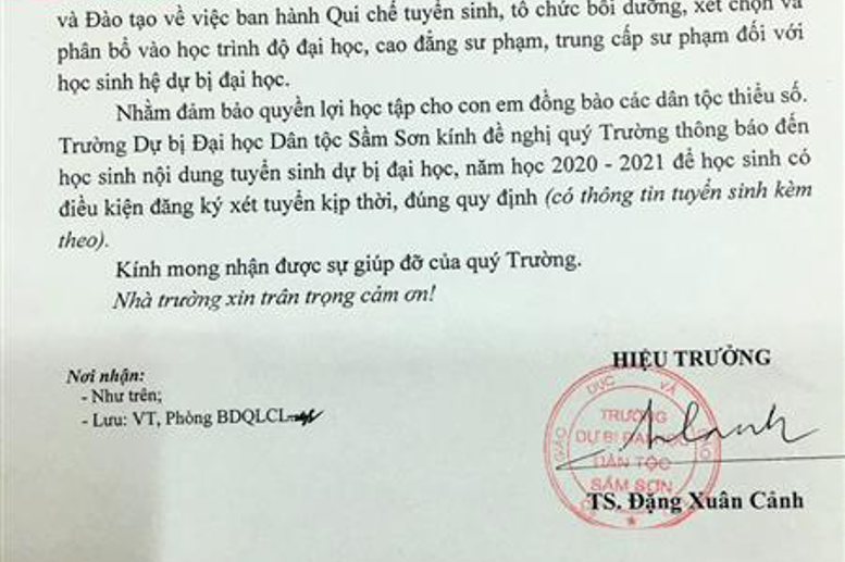 Trường Dự bị Đại học Dân tộc Sầm Sơn thông báo tuyển sinh dự bị đại học năm học 2020-2021