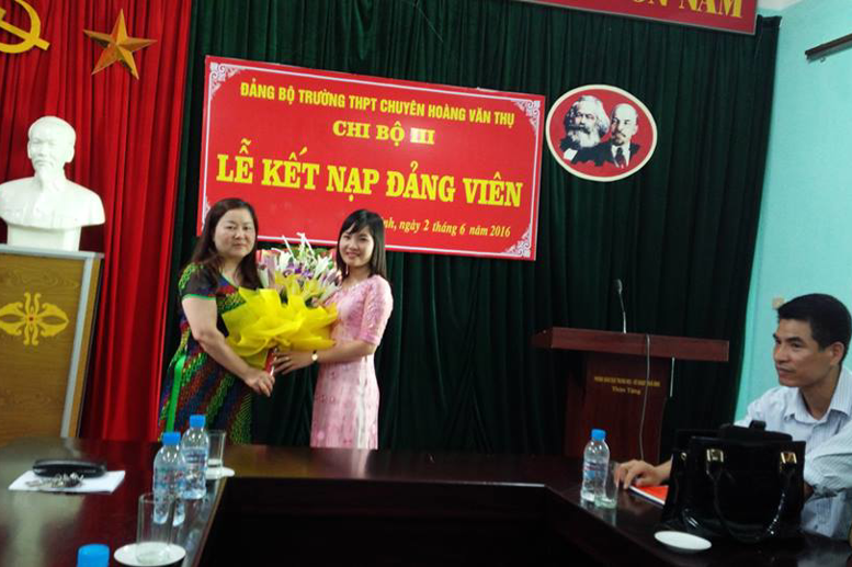 Ngày 02/06/2016, Đảng bộ trường THPT chuyên Hoàng Văn Thụ đã tiến hành lễ kết nạp đảng viên mới cho quần chúng ưu tú đang công tác tại trường. Lễ kết nạp diễn ra trong không khí trang nghiêm và theo đúng trình tự, thủ tục được quy định.
