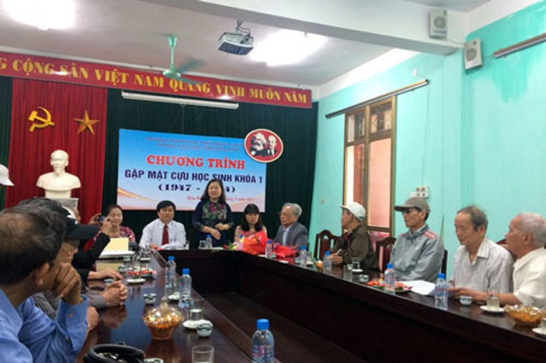 Phát biểu tại buổi gặp mặt tiến sĩ Lê Thị Hồng – Phó Bí thư Đảng bộ, hiệu trưởng nhà trường chia sẻ niềm vui, phấn khởi, tự hào của nhà trường về những thành tích mà các HS các khóa đã đạt được, đồng thời báo cáo tình hình phát triển của nhà trường trong 70 năm xây dựng và phát triển cũng như kế hoạch kỷ niệm trường vào tháng 11 năm 2017 sắp tới. Điều đặc biệt là các cựu HS đã được nghe tình hình phát triển trong nhà trường trong giai đoạn hiện nay, đó là công tác giáo dục đào tạo của nhà trường với xu hướng đổi mới toàn diện, nhà trường đã xây dựng mô hình dạy học trải nghiệm sáng tạo, phát huy tính tích cực của HS…từ đó tạo những bước đột phá trong chất lượng dạy và học. Cũng tại cuộc gặp mặt, các cư học sinh còn được ôn lại kỷ niệm của tất cả các lớp, các khóa học để tìm lại chính mình những năm tháng còn ngồi trên ghế nhà trường, biết bao kỷ niệm của thời HS lại ùa về khiến các thầy, cô thế hệ trẻ hết sức xúc động.