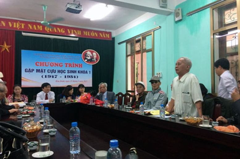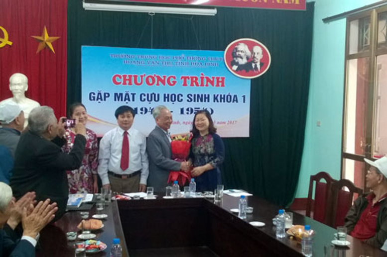 Trong buổi gặp mặt, ông Nguyễn Hồng Minh, học sinh khóa I (1947-1954) đã thay mặt ban liên lạc phát biểu ôn lại truyền thống, và bày tỏ tấm lòng tri ân với nhà trường, với thầy cô giáo; đề xuất giải pháp để hội cựu học sinh đang sinh sống tại tỉnh Hoà Bình ngày càng vững mạnh. Đồng thời phát động toàn thể các khóa tham gia ủng hộ hướng tới lễ kỷ niệm 70 năm thành lập trường. Các cưu học sinh khoá I đã thay lời Ban liên lạc và cử đại diện phát biểu cũng như trao kỷ vật ảnh, sách đầy ý nghĩa, thiết thực cho các hoạt động, các công trình hướng tới kỷ niệm 70 năm, ngày thành lập trường.