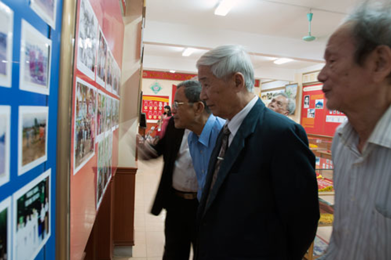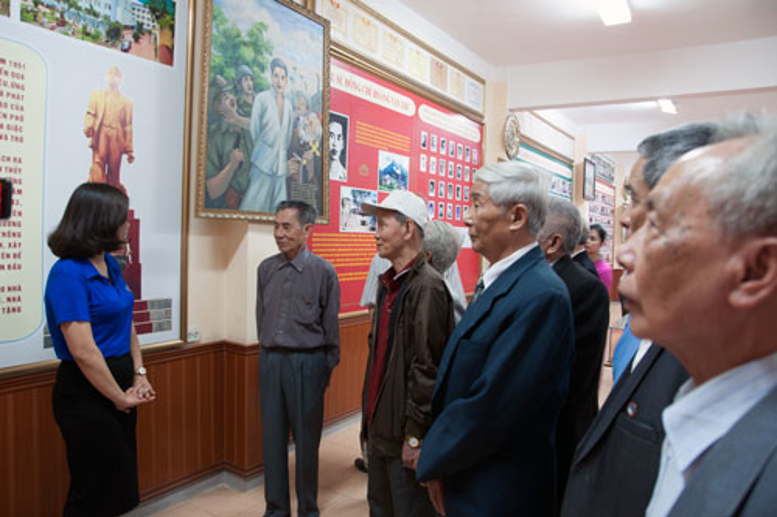 Các ông cựu học sinh thăm phòng truyền thống của nhà trường