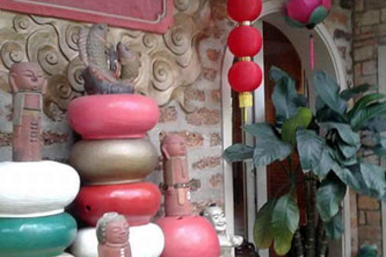 Trong từng tiểu tiết của Việt Phủ, chúng tôi cũng có thể cảm nhận được hơi thở và sức sống tựa nghìn năm trước về ẩn trong những đồ vật cổ, tượng Phật, voi, rồng, gà, cóc, ếch bằng đất, sứ và đá, những chum vại, sân đình… Bên cạnh đó, Việt Phủ còn gợi dậy một bầu không khí thiêng liêng với không ít các tượng Phật, bảo tháp Thiên Hương làm bằng đất nung, tháp Sơn Tĩnh ốp gạch.