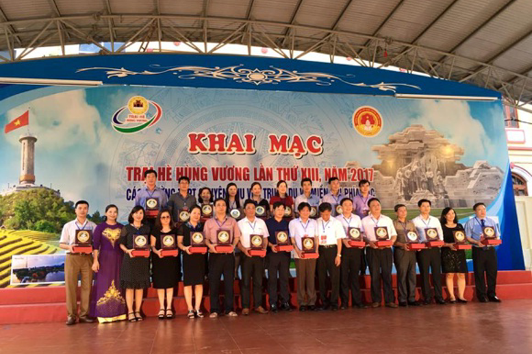 TS. Lê Thị Hồng nhận Kỉ niệm chương Trại hè Hùng Vương cùng các Trưởng đoàn