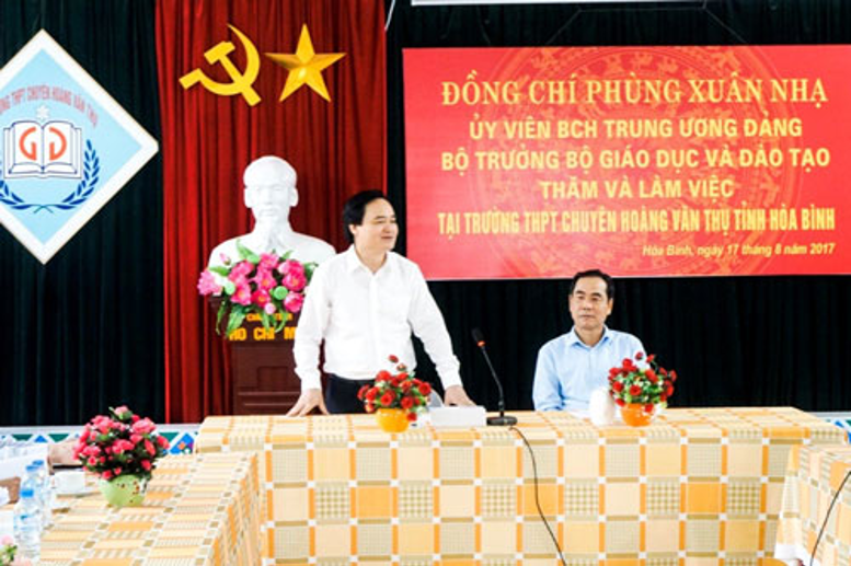 Kết luận buổi làm việc, Bộ trưởng Phùng Xuân Nhạ đề nghị trường THPT chuyên Hoàng Văn Thụ tiếp tục kế thừa và phát huy truyền thống dạy tốt – học tốt của nhà trường. Song song với việc đào tạo nhân tài cho tỉnh Hòa Bình cần tăng cường các hoạt động trải nghiệm nhằm phát triển năng lực toàn diện cho học sinh.