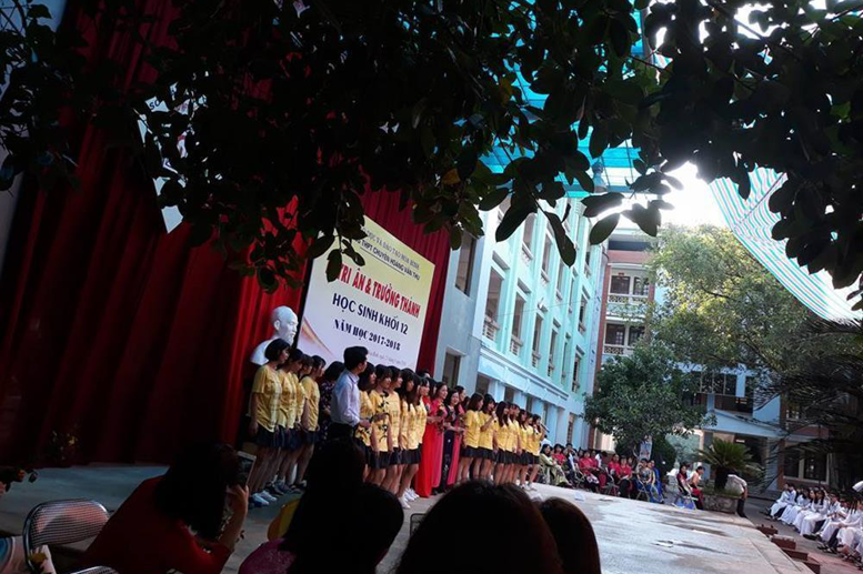 Mở đầu cho buổi lễ Lễ tri ân và Trưởng thành cho học sinh khối 12 (niên khóa 2015 – 2018) là ba tiết mục văn nghệ cảm ơn thầy cô và mái trường đã đem đến cho các em những ký ức thật đẹp, những giờ giảng thật hay, những lời dặn dò thật ý nghĩa. Tiết mục đã thu hút được sự tham gia của các thầy cô giáo giảng dạy các em học sinh khối 12 trong ba năm học vừa qua như cô giáo Phùng Ngọc Liên Hương, Lưu Thị Vinh, Mai Thị Thúy Ninh, Vũ Thị Hằng, thầy giáo Bùi Văn Vịnh, Phạm Đình Mẫn…Đặc biệt, xuất hiện trong các tiết mục của các em còn có cô giáo Lê Thị Hồng – Hiệu truởng nhà trường, cô giáo Nguyễn Thị Bạch Yến – Phó hiệu trưởng nhà trường.