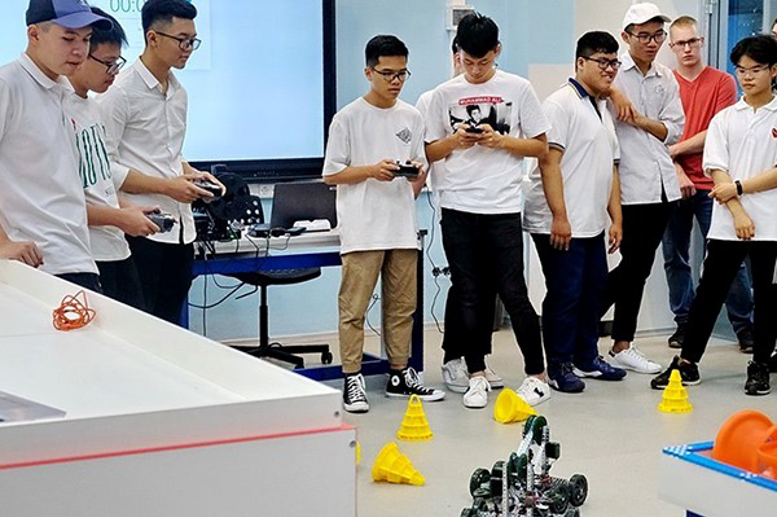 Các bạn nam đã tham gia các lớp học thạc sĩ về robot, đồ gốm, mô hình 3D và các thí nghiệm trong văn phòng vật lý.