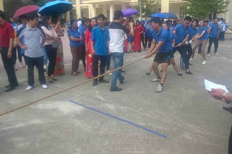 Hoạt động thi Kèo co – trò chơi Dân gian với sự tham gia của các thầy cô giáo rất sôi nổi