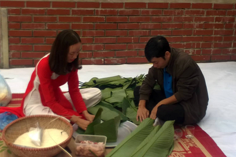sinh được tham gia bốc thăm trả lời câu hỏi, thi gói bánh chưng và chơi các trò