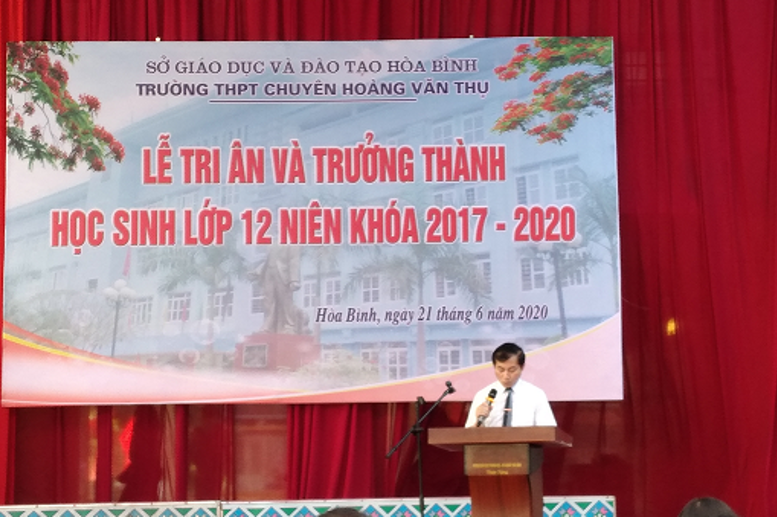 Phát biểu tại lễ tri ân, đại diện BGH nhà trường đã ghi nhận những nỗ lực của học sinh khối 12 nhà trường đã cố gắng khắc phục khó khăn, đạt được nhiều kết quả cao trong học tập. Đồng thời dặn dò các em học sinh cố gắng tập trung ôn bài thật tốt, chú ý giữ gìn sức khoẻ, bình tĩnh, tự tin,quyết tâm giành kết quả cao nhất trong Kỳ thi tốt nghiệp THPT quốc gia sắp tới. Thầy Bùi Văn Đường, Hiệu trưởng nhà trường đã có rất nhiều điều nhắn gửi: “Khi rời xa mái trường Hoàng Văn Thụ, phía trước các em là đường đời muôn ngả. Mỗi em sẽ chọn lối rẽ và đích đến cho riêng mình. Cuộc đời đang rộng mở chào đón các em với bao niềm vui nhưng không ít thử thách”. Thầy mong và tin rằng với tất cả những gì các em đã được trang bị cùng sự phấn đấu, tích lũy, thì trong môi trường học tập hay công tác nào, các em cũng sẽ thành công.