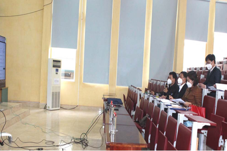 Ban giám khảo chấm trực tuyến tại trường Cao đẳng Sư phạm Hòa Bình (Ảnh BTC)