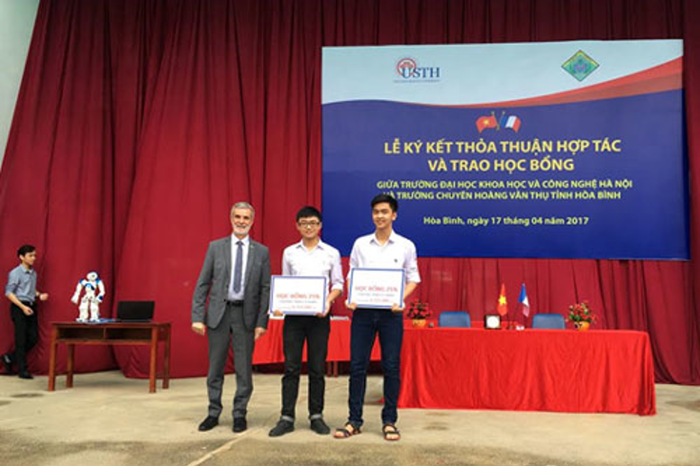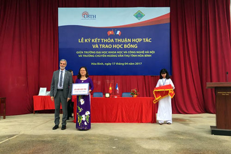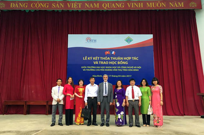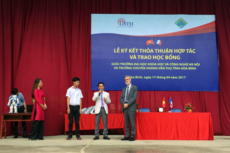 Sáng ngày 17/04/2017, tại trường THPT Chuyên Hoàng Văn Thụ tỉnh Hòa Bình đã diễn ra lễ ký kết thỏa thuận hợp tác và trao học bổng giữa trường ĐH KHCNHN và trường THPT Chuyên Hoàng Văn Thụ tỉnh Hòa Bình.